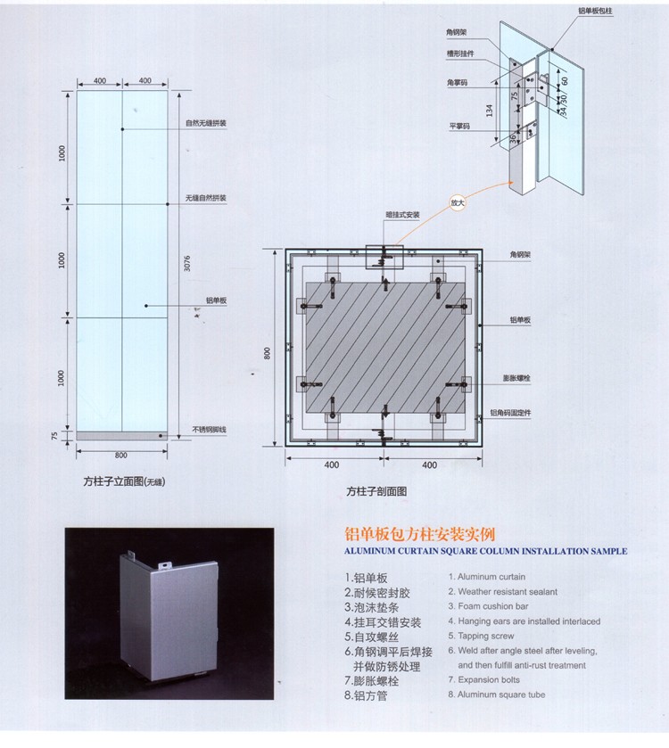 網站首頁 - 產品展示 - 包柱鋁單板 - 方型無縫包柱鋁單板